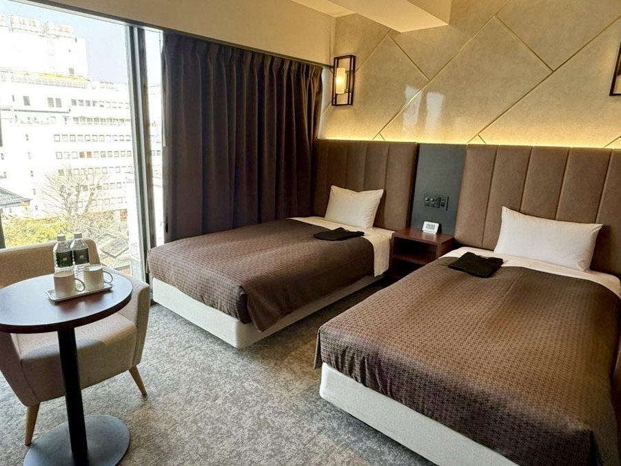 熊本城が眺望できる高層階確約のツインルーム。